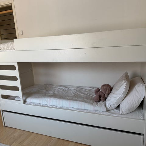 Myydään Avaroomin kerrossänky 80 x 200 cm ja siihen kuuluva sängynaluslaatikko/vierasvuode. Sängyt tällä hetkellä käytössä kahtena erillisenä sänkynä. Sängyt ovat tukevat ja hyväkuntoiset, toisen sängyn laidassa toki kulumaa (yläsänky, johon tulee laita päälle).