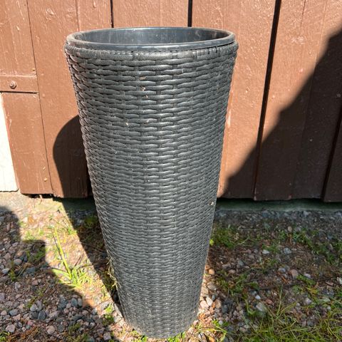 Musta kukkaruukku. Korkeus 37 cm, halkaisija yläosasta 32 cm.