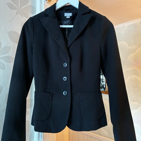 Lindexin valkoinen ryhdikäs bleiseri, vastaa kokoa pienehkö 36 (riippuu minkälaisen istuvuuden haluaa). Siisti, hyväkuntoinen. Ainoastaan kauluksessa niskassa sisäpuolella kangas hieman kellastunut, mutta ei näy kun vaate on päällä.