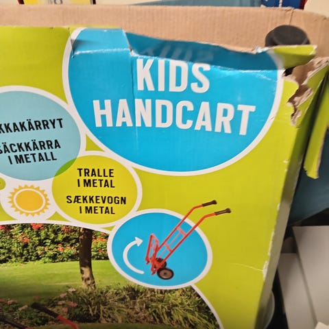 Myydään lasten muovinen nokkakärry pihaleikkeihin.