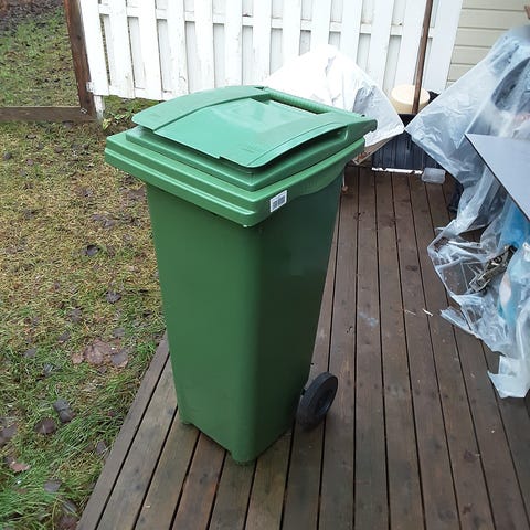 Siisti, PUHDAS, tukeva ja vähänkäytetty astia isoilla, lukittavilla pyörillä. Sopii jäteastia, hiekka-astia, leluastia yms. käyttöön.