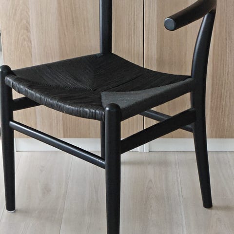 Myydään Ilmari Tapiovaaran Nana-tuoli (valmistaja J. Merivaara). Tuoleja löytyy yhteensä 3 kpl. Tuolit on uudelleenverhoiltu alkuperäiseen asuunsa – niissä on musta, hyvin kulutusta kestävä joustovinyyli (nahkajäljitelmä) ja selkänojassa on mustat tereet. Metallijalat on maalattu uudelleen ja maalipinnat ovat lähes ehjät. Leveys 51 cm (leveimmillään putkijalkojen kohdalta), korkeus 73,5 cm ja istuinkorkeus 50-luvun hengessä hieman tavallista matalampi 41,5 cm. Valmistaja Merivaara.