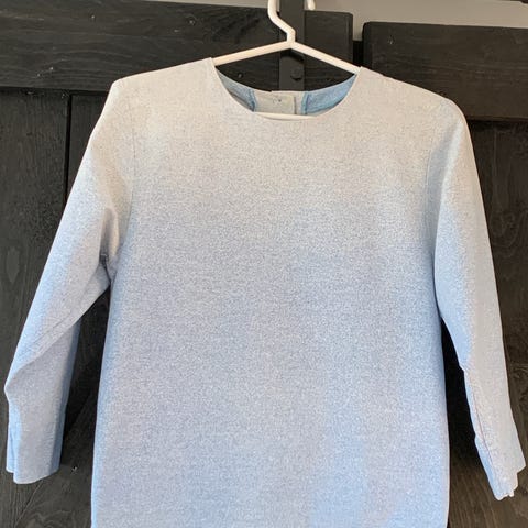 Marimekon sinivihreäraidallinen paita. Paljon käytetty, on ehjä. Hihat aikoinaan lyhennetty.. Koosta ei tietoa, veikkaisin 140. Mitat kainalo-kainalo 38cm ja pituus osalta helmaan 57cm