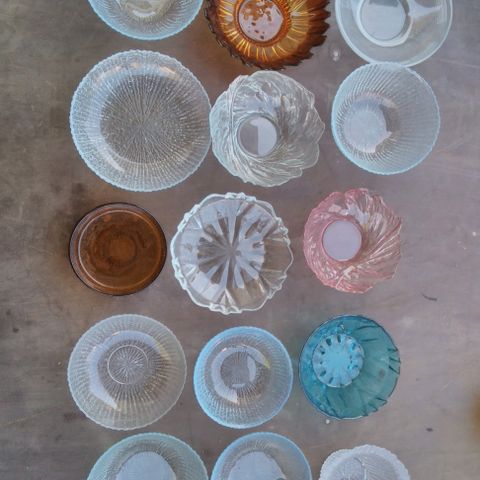 Riihimäen Lasin käyttämättömiä isoja tarjoilukulhoja.