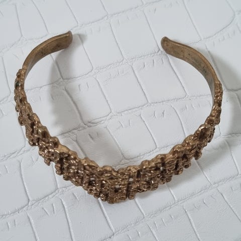 Kaunis rannekoru pronssia.Pertti Peurin suunnittelema.Hyvä lukko ja varmuusketju. Pituus 21cm.