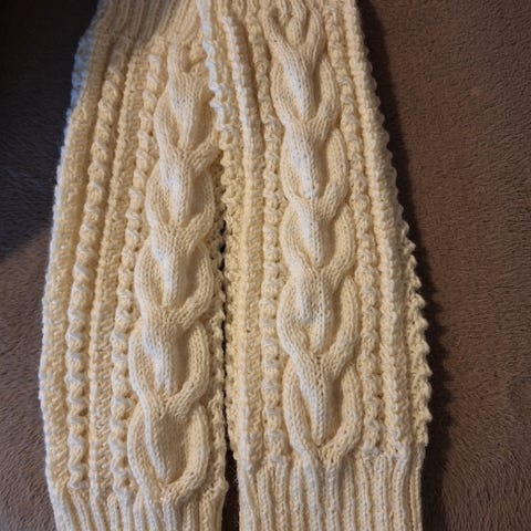 Valkoiset palmikko säärystimet Myhome living langasta 75% villa ja 25% polyamidi. Pituus 31cm