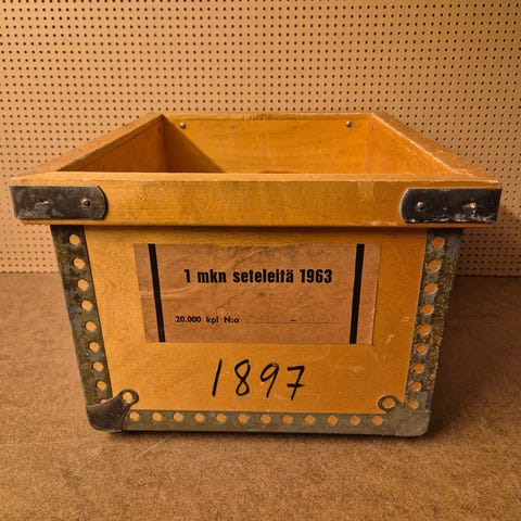 Myynnissä myös hieman matalampi vanha vanerilaatikko.