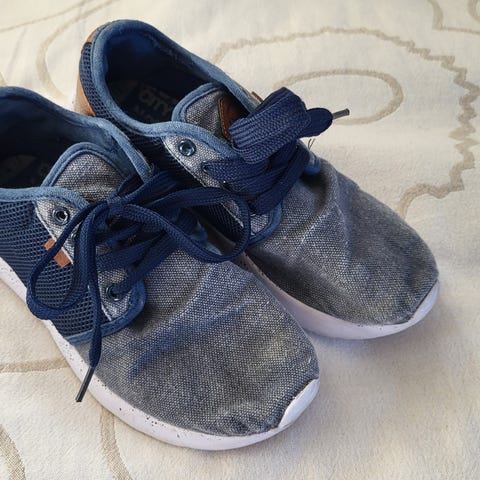 Myydään hyväkuntoiset lasten neuloskengät. Koko 35. Väri tummansininen.