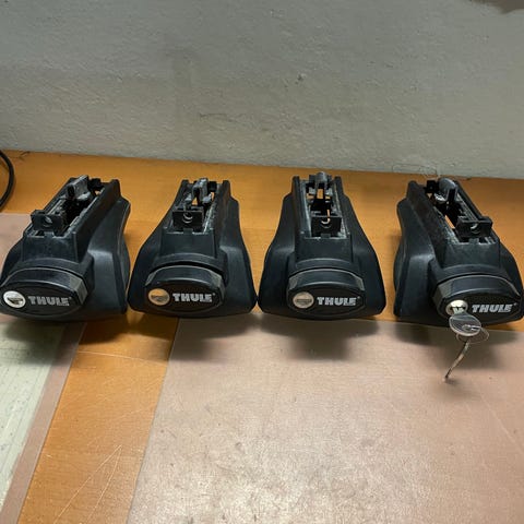 Automallikohtainen asennussarja taakkatelineiden jalkojen kiinnittämiseksi autoon.