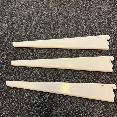 4 kpl 470 mm pitkiä hopeanvärisiä ja 2 kpl 200 mm pitkiä vaaleanharmaita hyllykannattimia. Kaikki yhdellä kertaa. Nouto tai postitus.
