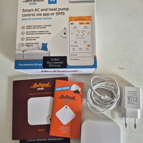 Vähän käytetty hyvin toimiva monipuolinen ilmalämpöpumpun etäohjain. Toimii lähes kaikkien ilmalämpöpumppujen ohjaimena. Ohjaus tekstiviesteillä tai puhelimeen ladattavalla ilmaisella AirPatrol-sovelluksella. Ohjain toimii GSM-verkossa eli vaatii SIM-kortin. Ohjain ei tarvitse wifi-verkkoa toimiakseen.