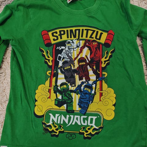Tummansininen Lego -merkkinen paita Ninjago -kuvalla.