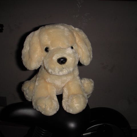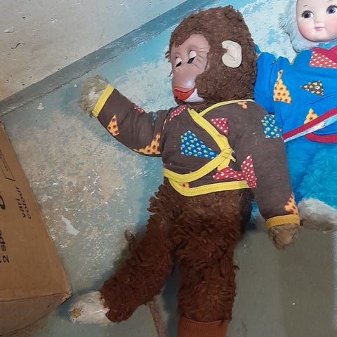 Hahmo oli painettu kankaalle, josta ne oli tarkoitus leikata irti, ommella ja täyttää pehmoleluiksi. Kankaan reunaan oli painettu ompeluohjeet.