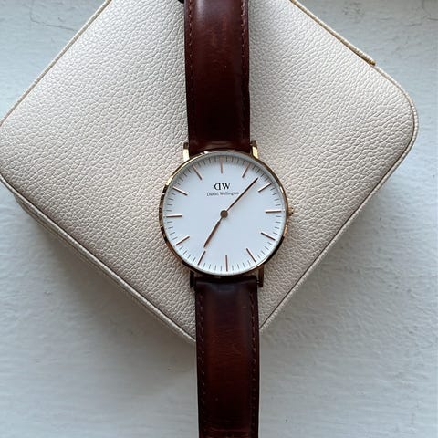 Tyylikäs ja klassinen Daniel Wellington -rannekello myynnissä erinomaisessa kunnossa. Mukana alkuperäinen laatikko – täydellinen lahjaksi tai omaan käyttöön.
