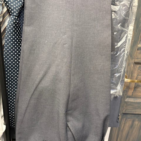 Miesten mustat suorat housut. Kiinnitys vetoketju, hakanen ja nappi.