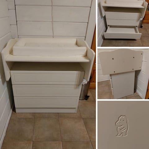 Runsaasti käytön jälkiä, mutta ehjä ja ajaa asiansa eli tavaroiden säilytyksen.