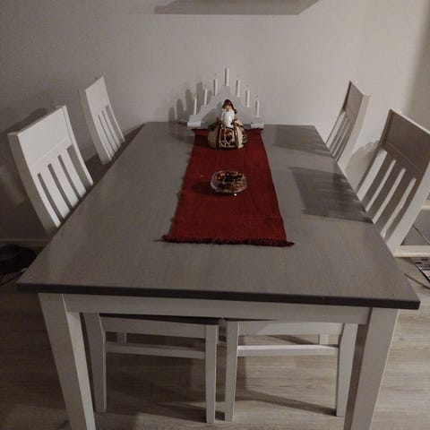Käytönjälkiä. Näppärä tuunaaja saa siistin pöydän ja tuolit.