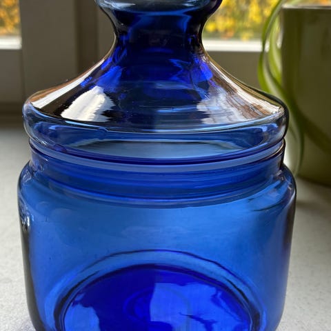 Lasi purkki, mittoja korkeus n.17cm halkaisija n.18cm suuaukko halkaisija n.13,5cm
