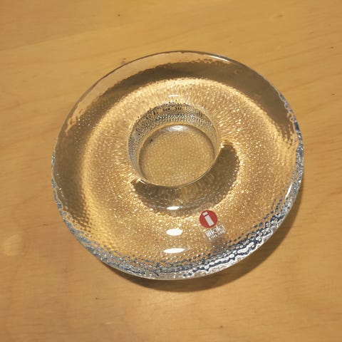 Vaaleansininen Iittalan nappi tuikkukippo 12cm halkaisija. Tarra paikallaan. Postikulut lisätään hintaan jos lähetän.
