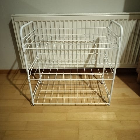 Myydään kenkähylly. Tummanharmaa. Päissä kulumaa, katso kuvat.
