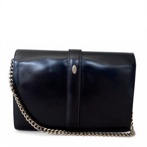 Yves Saint Laurent Rive Gauche vintage laukku, materiaali nahka, väri musta ja hopean väriset metalliosat.