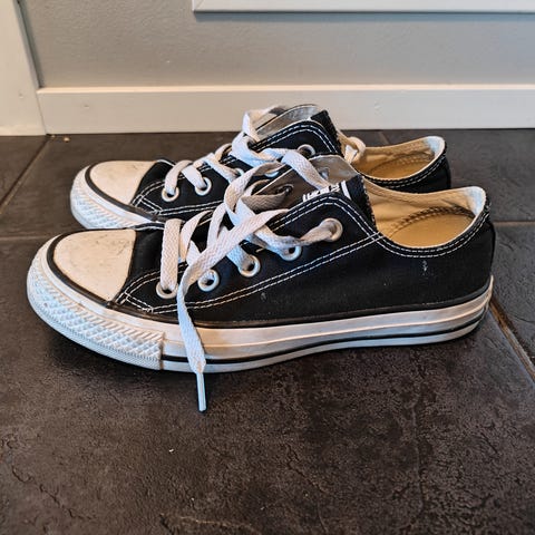 Hyväkuntoiset, vähäiselle käytölle jääneet kokonaan mustat Converset. Koiratalous.