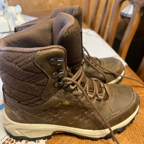 Halti drymaxx. Koko ilmoitettu 39 mutta sopivin 37 ja itselleni sen vuoksi liian pienet. Muutaman kerran pidetty. Lämpimät varrelliset talvikengät.