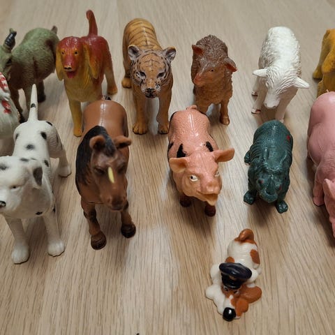 5kpl hyväkuntoisia eläimiä (koira, possu, kirahvi, norsu, lammas)