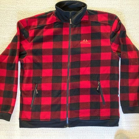 Swedteamin käytetty mutta hyväkuntoinen fleece -paita neppareilla. Klassinen metsuri -ruutukuosi - punamusta
