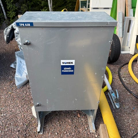 Työmaakeskus 32A Ehjä ja tarkastettu. Vikavirtasuojattu = Laillinen.