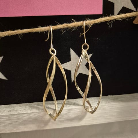 Hyvässä kunnossa olevat, muutaman kerran käytetyt roikkuvat korvikset joissa timanttijäljitelmää.