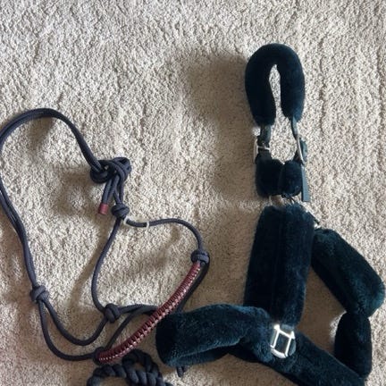 Käytetty Fairfield harjapakki, joka sisältää erilaisia harjoja, riimunnarun ja kumilenkkejä.