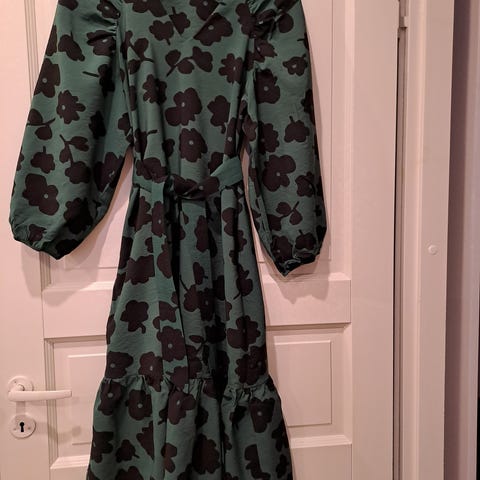 Kaunis juhlamekko, jonka yläosassa kukkakuvioita ja edessä söpö rusetti. Mekossa on säädettävät olkaimet ja takana vetoketju. Mekkoa voi pitää halutessaan myös ilman olkaimia. Tässä mekossa tuntee olevansa kuin prinsessa!