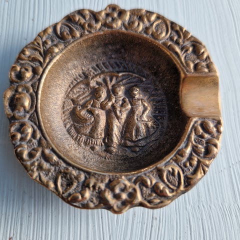 Hakusanat: tuhkakuppi, vanha, messinkinen, lahja, matkamuisto, keräily, design, Pariisi, Notkea Dame