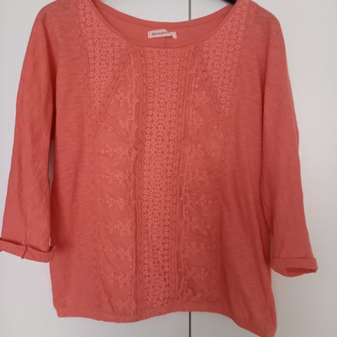 Väriltään vaaleanpersikkainen ohut paita, jonkin verran käytetty, erittäin hyväkuntoinen.