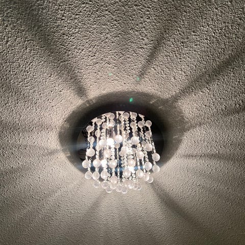 Kodin Ykkösestä ostettu kristalli plafondi. Kolme kristallia on irti. Mutta tallella ja korjattavissa.