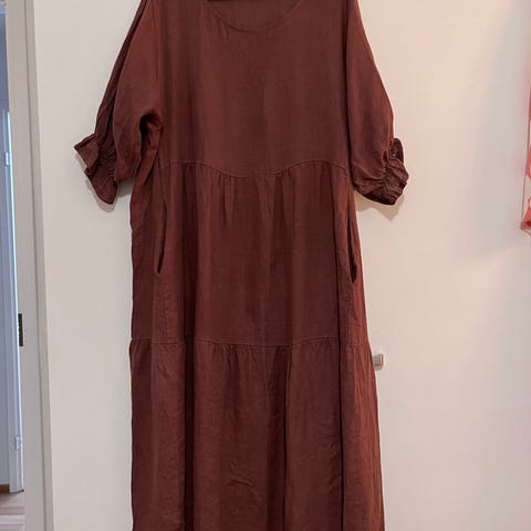 Käyttämätön, hihaton, ruosteenruskea/ruosteenpunainen pellavamekko (100% pellava).