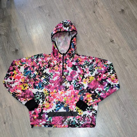 Vaaleanharmaa SOC- merkkinen hupullinen juoksutakki k.34. Leveys 34 cm, Pituus 60 cm.Uudenveroinen.