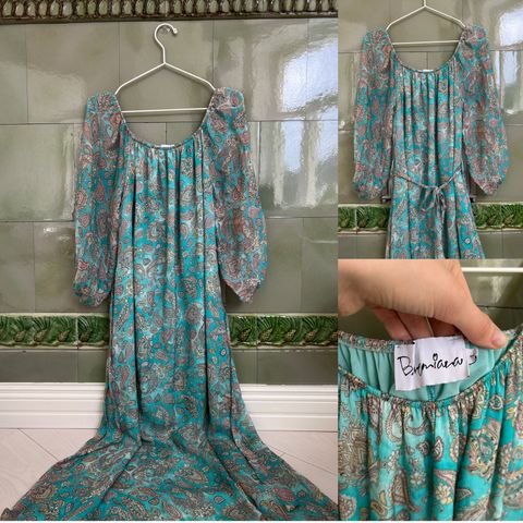 Myydään yhden kerran käytetty laadukas SANDS mekko. Pohja beige, jossa kauniita kukkia. Koko noin 38-40. Kangas napakkaa, mutta joustavaa, joten istuu hyvin päälle. Takana selässä vetoketju, ja helmassa alhaalla pieni halkio alareunassa.