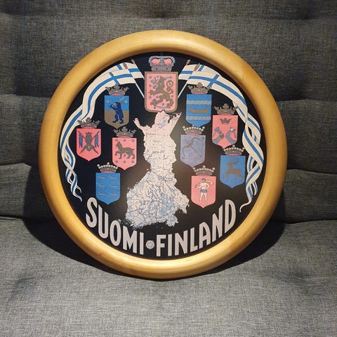 Kuvien vanha kangastaulu. Koko on noin 66×50 cm. Kehystetty kangas pahvitaustalla.