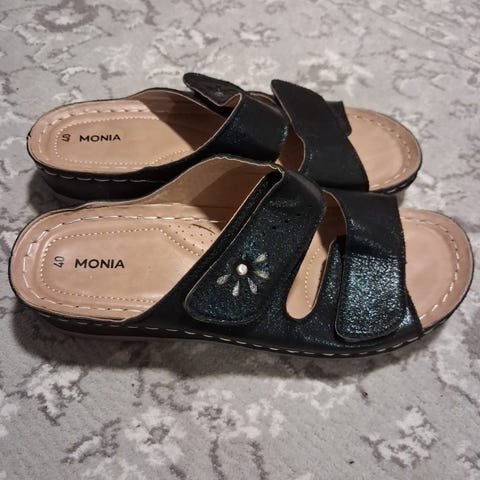 Mukavat ja kauniit sandaalit. Kuten kuvista näkyy, pidetty todella vähän, vain muutama kerta altaalle ja takaisin kävelty. Ostettu kekäleestä.