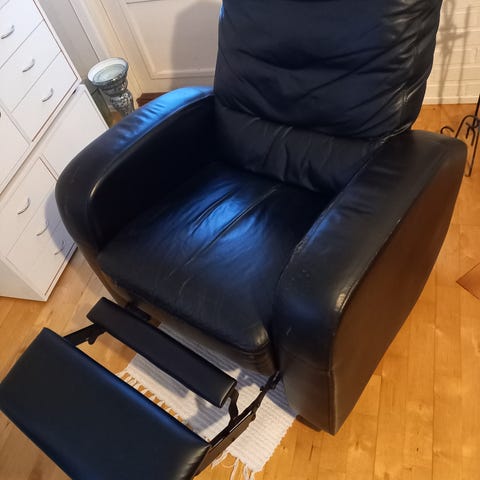 Elämää nähnyt, ruskea laiskanlinna, mekanismi nojatuoli. Keinuva Lazboy . Toimiva. Mukava istua. 50€/tarjoa!