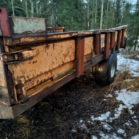 Kaksiakselinen peräkärry kippilavalla. Runkorakenne ja lava ovat valmistettu teräksestä. Käytetty ja näkyvää kulumista sekä ruostetta esiintyy. Soveltuu kuorman kuljetukseen ja lastaukseen.Lava vaneroitu pohjasta ja laidoilta! Lavan voi pudottaa rungon välistä maahan! Soveltuu erinomaisesti vaikka kaivinkoneen lavettiaihioksikin,painopiste alhaalla,samalla tasolla kun pyörien navat! Vapaa tila telin välissä n.1800mm!