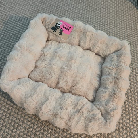 Iso peti. Kelpas tämä pentuna muutaman kuukauden mutta ei sen jälkeen. Ehyt. Päällisen saa irti ja voi pestä pesukoneessa.