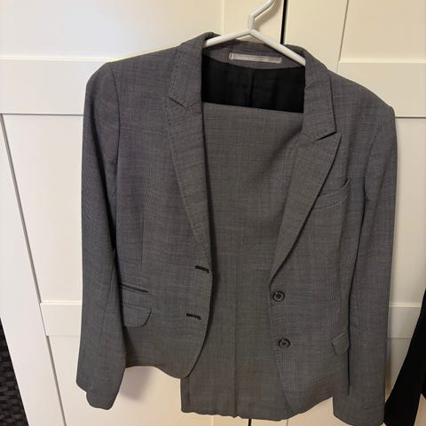 Kaunis harmaa laadukas 38 Tigerhousupuku, kaksi taskua takissa. Housut: lahkeissa Kiva 3cm halkio. 4 taskua. Vähän käytetty.