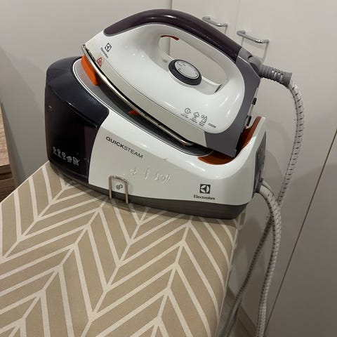 Myytävänä Tobi-silityskone, jolla höyrytetään vaatteita ripustimessa. Liikuteltavissa pyörillä. Voidaan tuoda Kuopioon.