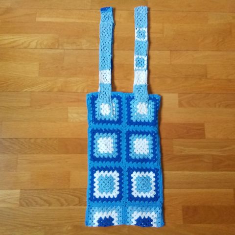 Käsin virkattu isoäidinneliökassi lanka novita 7 veljestä.