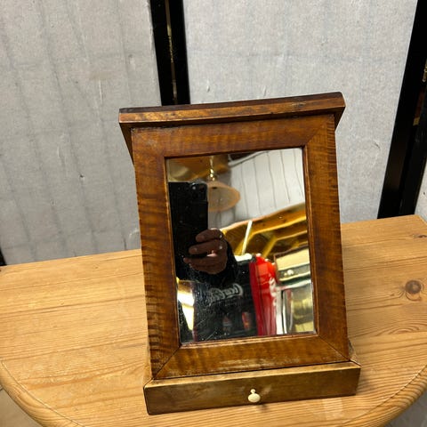 Vanha tummanruskea partapeili lokerikolla ja avaimella.