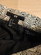 H&M merkkinen mustavalkoinen lyhyehkö, tyköistuva hame. Pituus noin polvien yläpuolelle.
