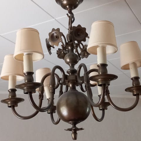 Näyttävä messinkinen barokkikruunu kuudella polttimolla. Nouto 150€